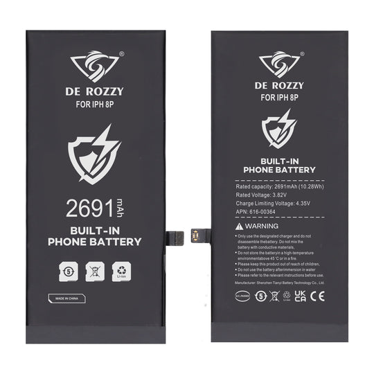 Brand:DerozzyModel:iphone 8 Plus BatteryBattery Type:Li-ionCapacity:2691mAhVoltage:3.82VLimited Voltage:4.35VSafety:DuaI IC s protectionCharging Time:1-3hoursStandby Time:5-8daysCycle Time:Over 700 timesSale price €2,87Regular price €3,10Sale price €2,87Regular price €3,10 -